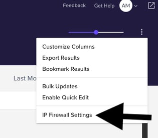 Once you have added all of the IP addresses for the devices you would like to allow to access your Volusion store's Admin, click the three dot menu in the top right of the screen and then select IP Firewall Settings.