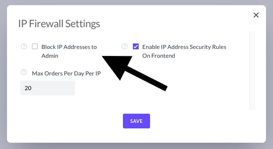 By default Block IP Addresses to Admin will be unchecked. Check Block IP Addresses to Admin and then click Save.