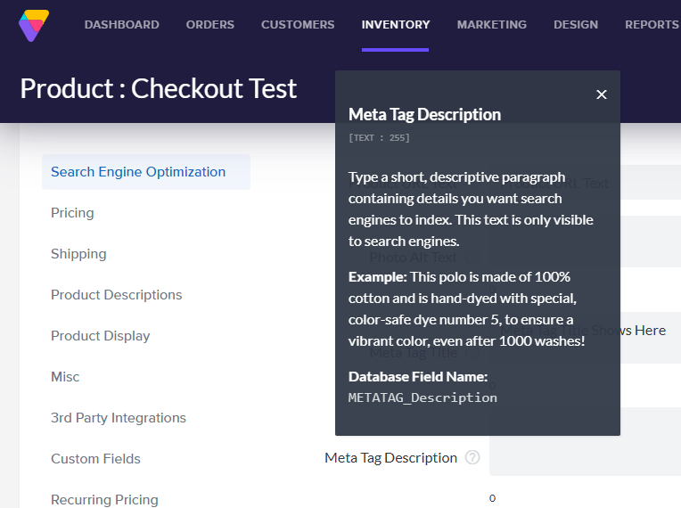 The Photo Alt Text field allows you to add a title to the product's main image. This can be very useful as Search Engines cannot interpret what your image is. Adding a name can help clarify for potential searcher's exactly what your image is.