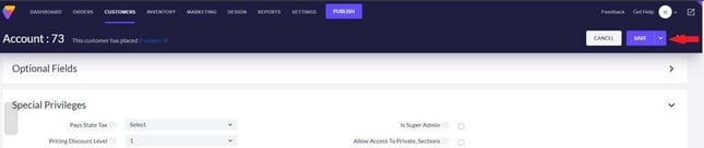 Under Special Privileges, enter the discount for this customer in the Percent Discount field. This discount covers ALL products in your store. Click the Save button at the top right of the page.