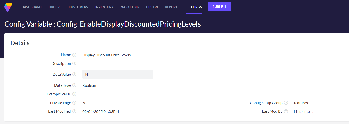 (Currently the above config variable is hidden from the search tool, if you run into issues locating the variable please amend this url extension to your stores domain to load it directly /admin/AdminDetails_Generic.asp?table=ConfigSetup&Page=1&ID=Config_EnableDisplayDiscountedPricingLevels Then change that value from Y to N.)