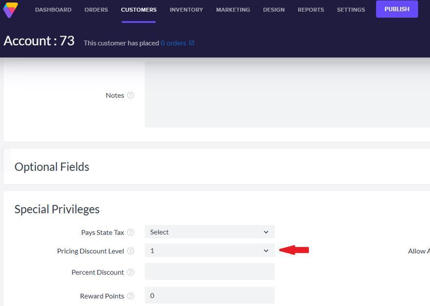 The Pricing Discount level will correspond to the Discounted Price Level you previously set in the product. For instance, a customer with Pricing Discount Level 1 set will see the price you added for Discounted Price Level 1.