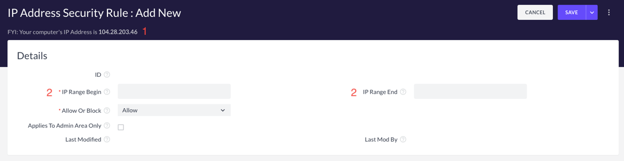Copy the IP address indicated and place it in the �IP Range Begin� and �IP Range End� fields as indicated by the number �2� in the screenshot below.