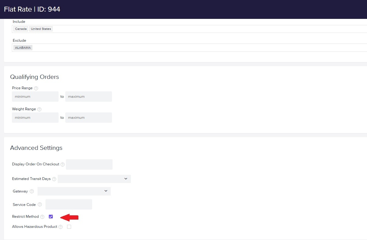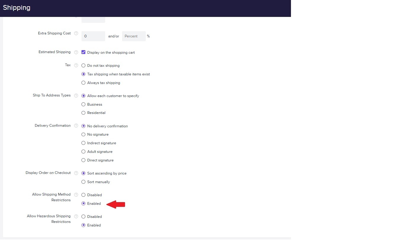 In the Advanced Settings section, toggle the Allow Shipping Method Restrictions option to Enabled.