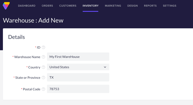 Fill in the required information for each new warehouse you create (all fields are required).